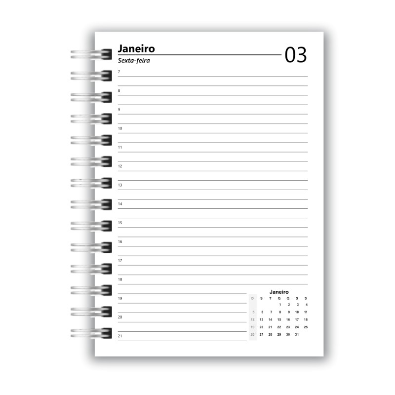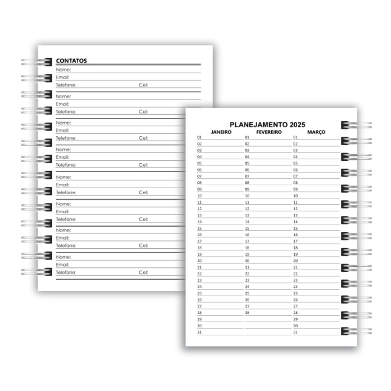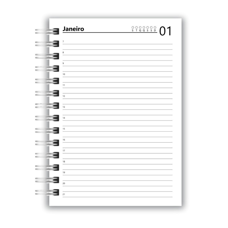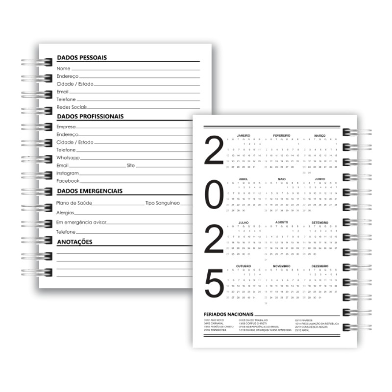 - Encadernação com Wire-o (branco, preto ou dourado de acordo com disponibilidade em estoque);