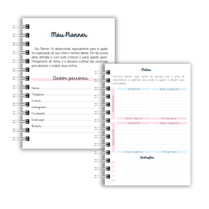 O Planner permanente não é datado, você pode começar a usa-lo em qualquer período do ano.